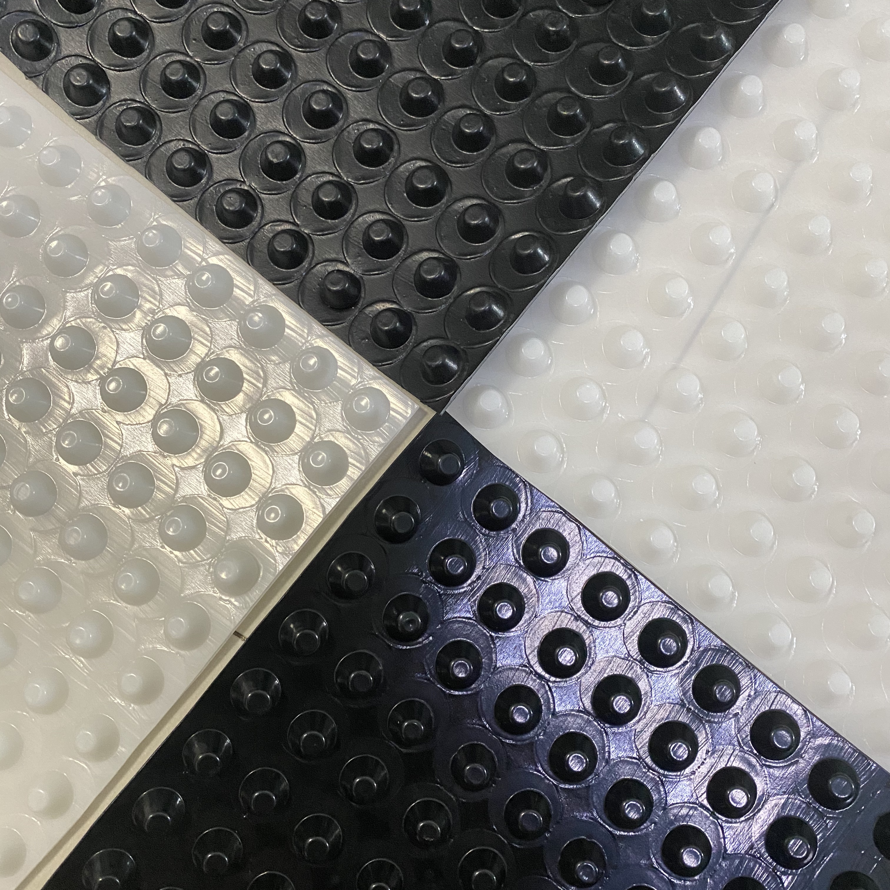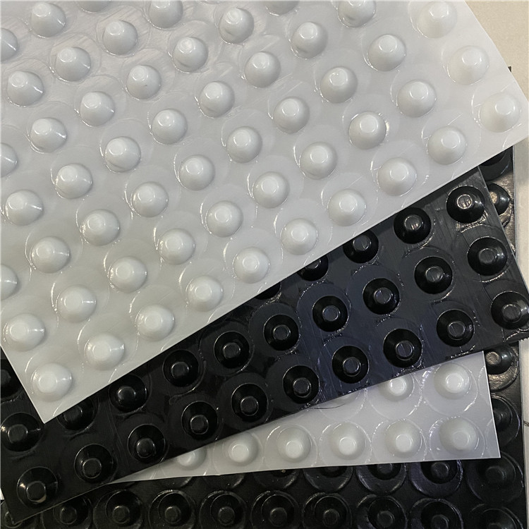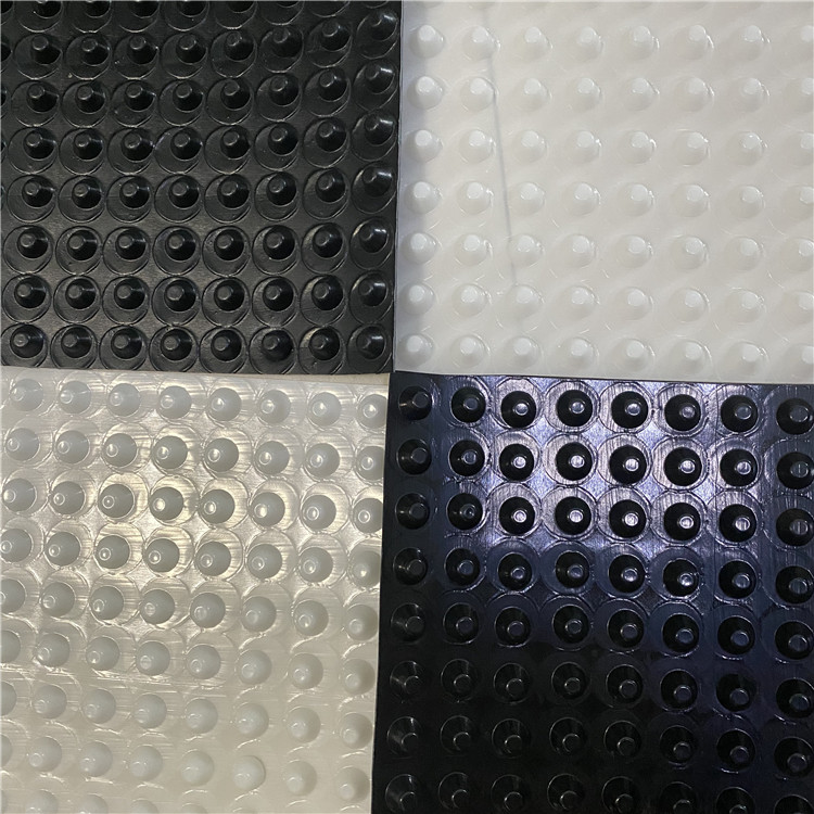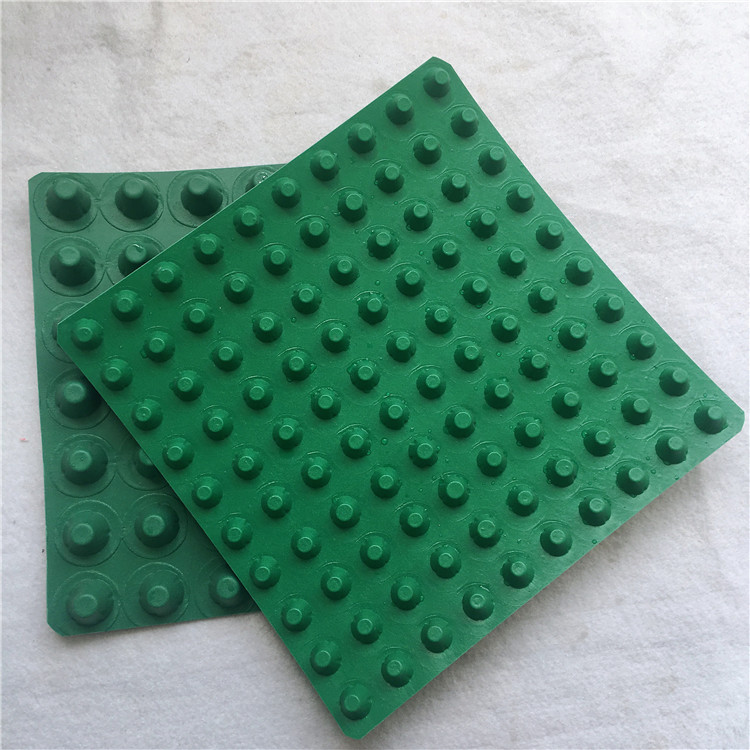 圓錐突臺的頂面膠接一層過濾土工布,以阻止泥土微粒通過,從而避免排水通道阻塞使孔道排水順暢。 傳統(tǒng)的排水方式使用磚石瓦塊作為導(dǎo)濾層、使用較多的鵝卵石或碎石作為濾水層、將水排到指定地點。而用排水板取代鵝卵石濾水層來排水則省時、省力又節(jié)能、節(jié)省投資、還能降低建筑物的荷載。