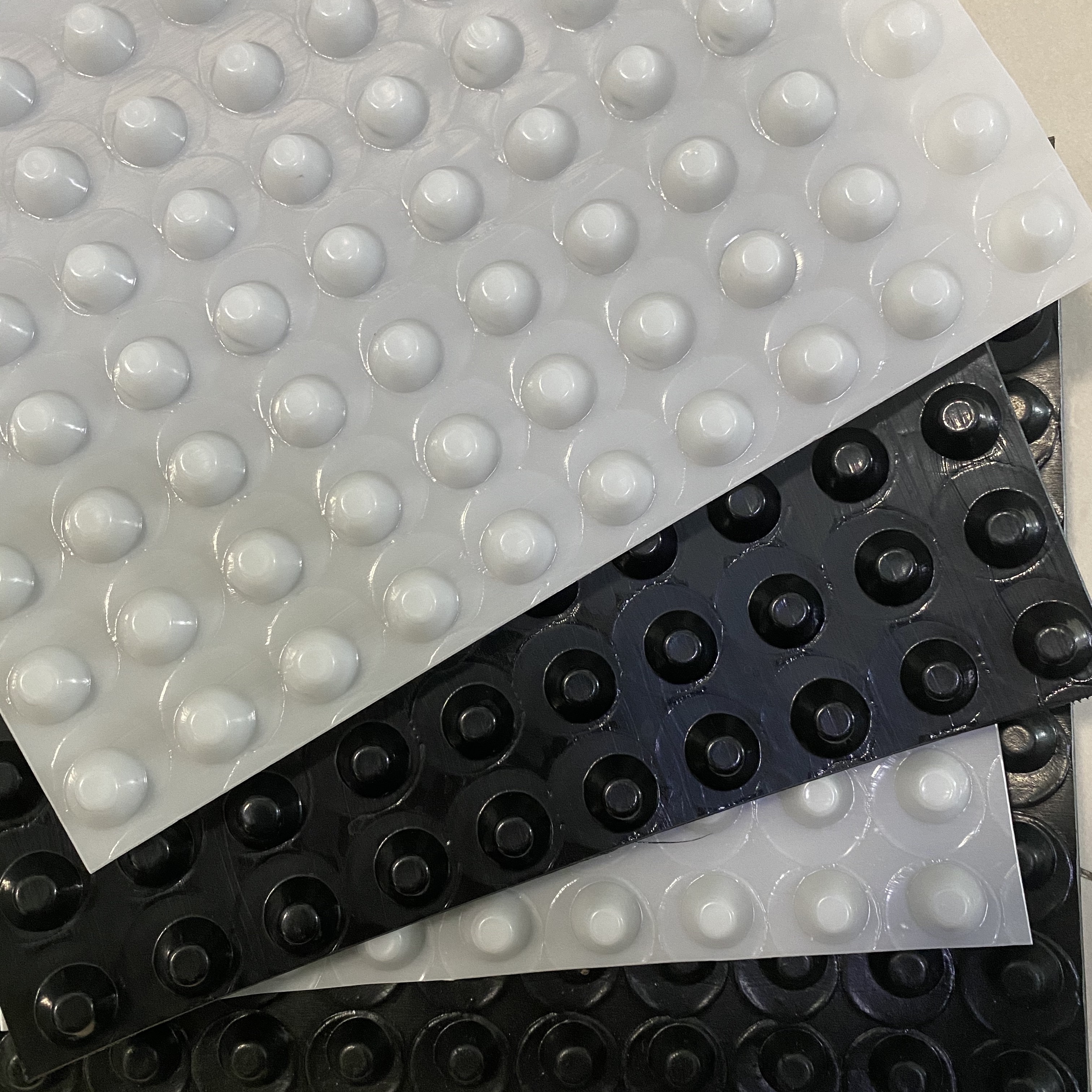 排水板 是由聚苯乙烯(HIPS)或者是聚乙烯(HDPE)為原料塑膠底板經(jīng)過沖壓制成圓錐突臺或者加勁肋的凸點(或中空圓柱形多孔)而成,經(jīng)過不斷的創(chuàng)新研發(fā)原料得到巨大提升和變更,現(xiàn)由聚氯乙烯(PVC)為原料壓制而成,抗壓強(qiáng)度和整體平整度得到大幅度的提升,幅寬有1~3米,長度有4~10米或者以上。