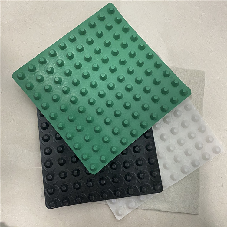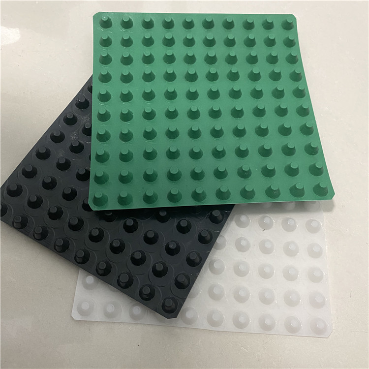 圓錐突臺的頂面膠接一層過濾土工布,以阻止泥土微粒通過,從而避免排水通道阻塞使孔道排水順暢。 傳統(tǒng)的排水方式使用磚石瓦塊作為導(dǎo)濾層、使用較多的鵝卵石或碎石作為濾水層、將水排到指定地點。而用排水板取代鵝卵石濾水層來排水則省時、省力又節(jié)能、節(jié)省投資、還能降低建筑物的荷載。